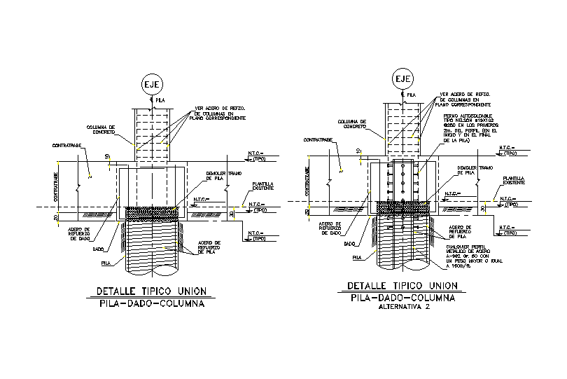 Typical detail of pile dice & column joint is given in this Autocad drawing file.Download now.