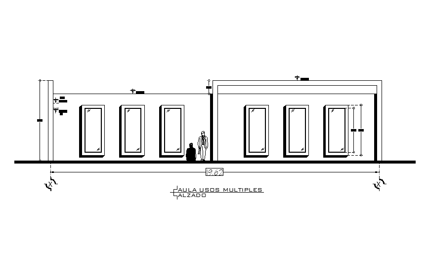 Front elevation of Multiple class room of 20x5m architectural kinder garden is given in this Autocad drawing file. Two class rooms are given in this plan. Each class room length is 9m. Staircase is provided in between two class rooms. For more details download the autocad drawing file. Thank you for downloading the autocad file and other cad program files from our website.