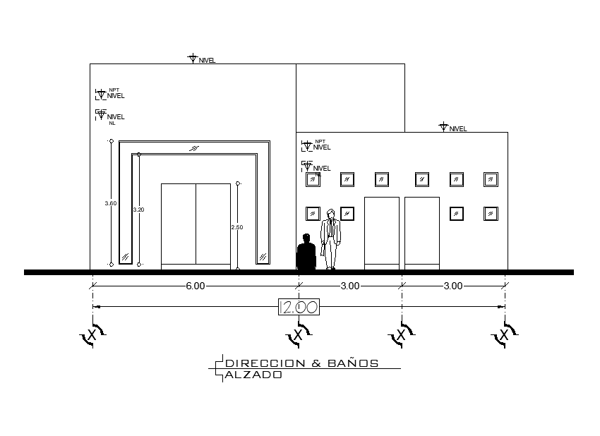 Front elevation of toilet of 20x5m architectural kinder garden is given in this Autocad drawing file. Two class rooms are given in this plan. Each class room length is 9m. Staircase is provided in between two class rooms. For more details download the autocad drawing file. Thank you for downloading the autocad file and other cad program files from our website.