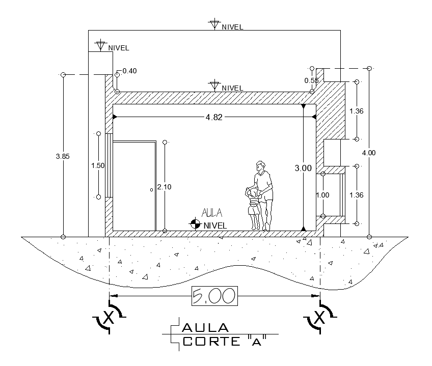 Section view of 20x5m architectural kinder garden is given in this Autocad drawing file. Height of the building is 4m. Two class rooms are given in this plan. Each class room length is 9m. Staircase is provided in between two class rooms. For more details download the autocad drawing file. Thank you for downloading the autocad file and other cad program files from our website.