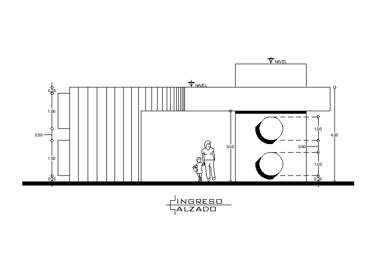 Entrance view of 20x5m architectural kinder garden is given in this Autocad drawing file. The height of the building up to water tank is 6m. Two class rooms are given in this plan. Each class room length is 9m. Staircase is provided in between two class rooms. For more details download the autocad drawing file. Thank you for downloading the autocad file and other cad program files from our website.