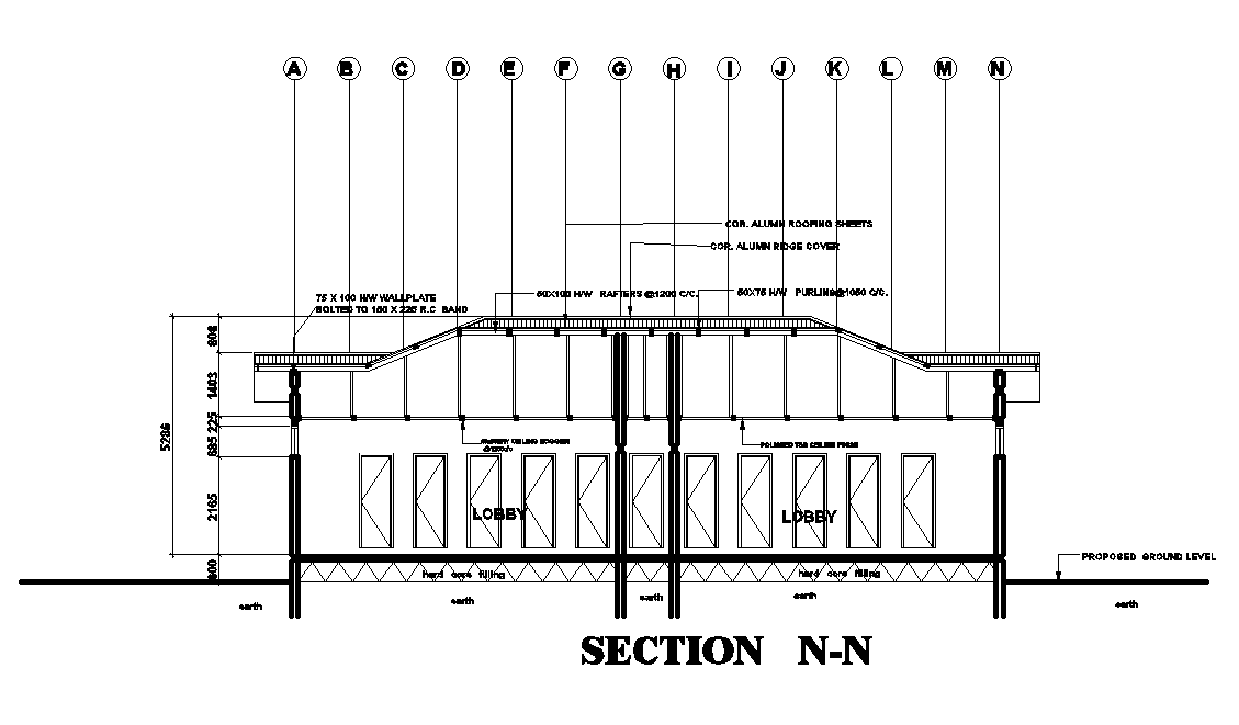 Mirror section view of 6x6m ground floor plan of security lounge is given in this Autocad drawing file. Download now.