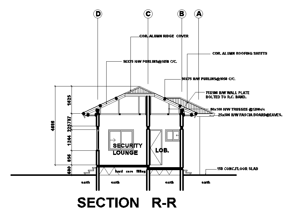 Section view of 6x6m ground floor plan of security lounge is given in this Autocad drawing file. This is single story building. Storage, lobby, security lounge and water closet is available in this ground floor. For more details download the Autocad drawing file. Thank you for downloading the Autocad drawing file and other CAD program files from our website.