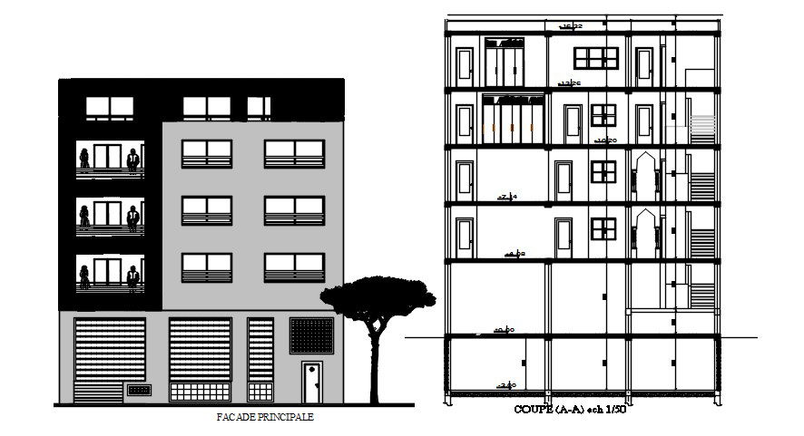 AutoCAD Drawing Apartment Building Sectional Elevation Design DWG File