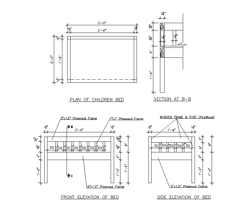 Bed Working Detail Drawing Shown in AutoCAD DWG File