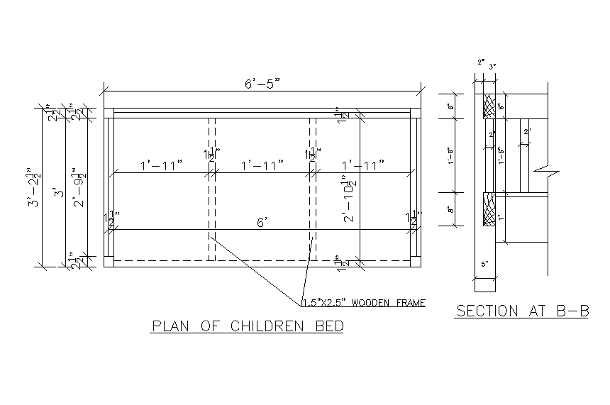 2D AutoCAD DWG Children Bed Plan Drawing File for Kids Bedrooms