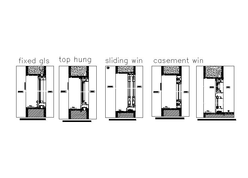 Pivoting window detail is presented in this Autocad drawing file. Download this 2d AutoCAD drawing file.