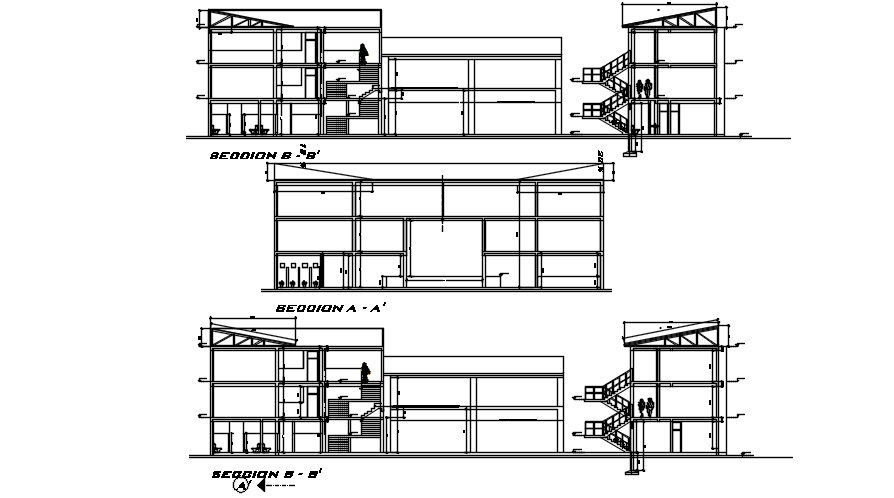the commercial building section CAD drawing that shows G+2 storey floor level building model design, out side staircase, RCC slab, truss span roof and many more detail in DWG file. Thank you for downloading the AutoCAD drawing file and other CAD program files from our website.
