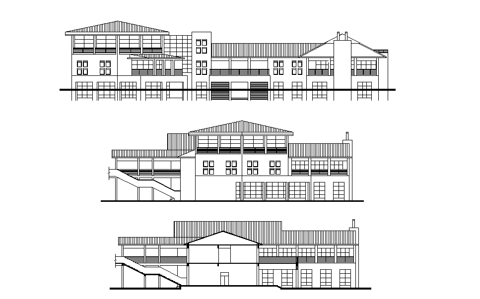 G+1 shopping building elevation is given in this Autocad drawing file. 3 side elevations are given in this drawing. Doors, windows, staircase, ventilation and other details are given in this Autocad drawing model. For more details download the Autocad file. Thank you for downloading the Autocad file and other CAD program files from our website.