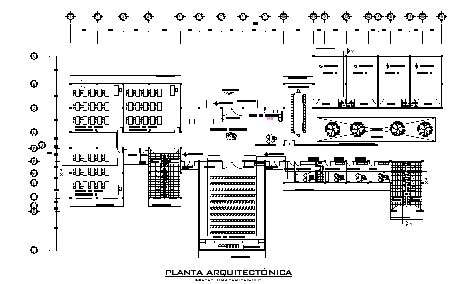 72x38m school building plan is given in this Autocad drawing file. This is single story school building. In this school plan, the auditorium, class rooms, Principal room with attached toilet, staff rooms, dining area, conference room, reception and other details are given in this Autocad drawing file. For more details download the Autocad file. Thank you for downloading the Autocad file and other CAD program files from our website.