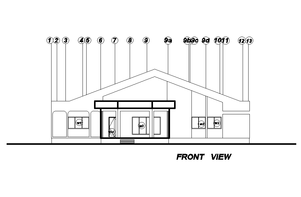Front view of 20x22m house plan is given in this Autocad drawing file. Download now.