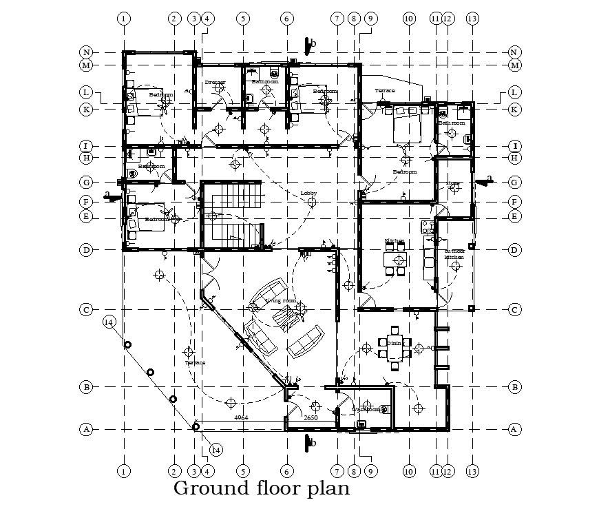 Electrical layout of 25x27m house plan is given in this Autocad drawing file. Download now.