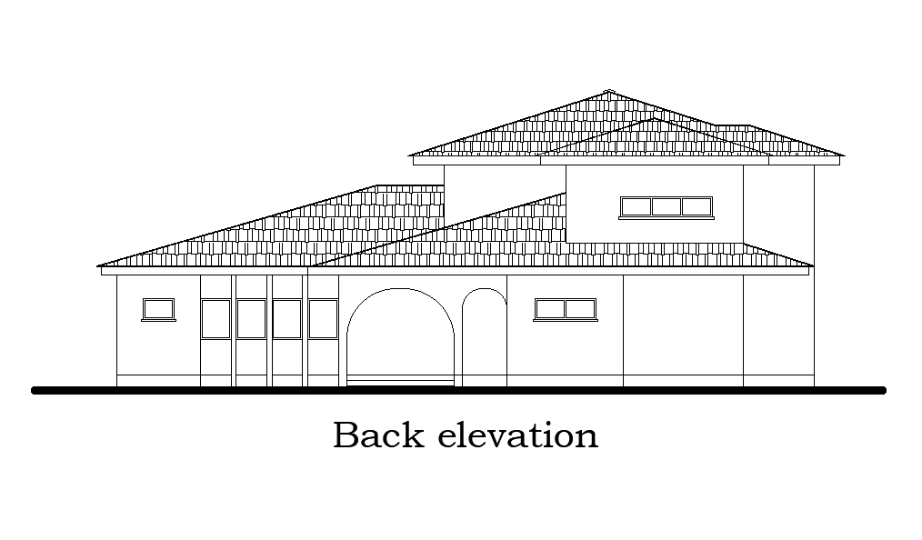 Back elevation of 25x27m house plan is available in this Autocad drawing file. Download now.