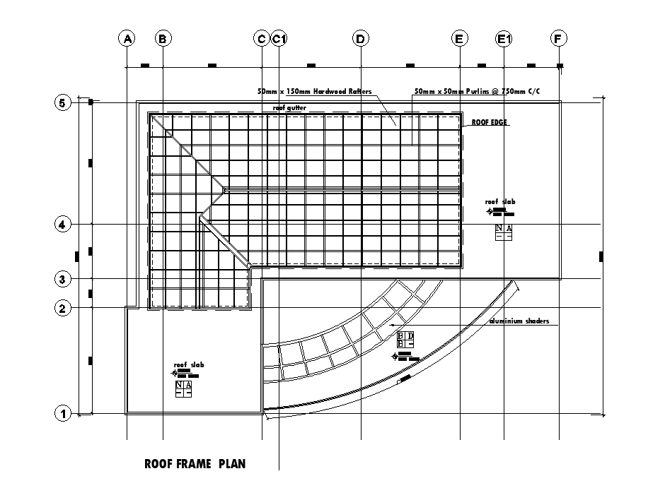 Roof frame of 25x27m house plan is given in this Autocad drawing file. Download now.