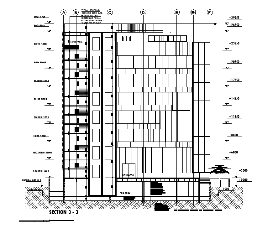 Section view of the apartment building is presented in this Autocad drawing file. This is G+8 apartment building. Car parking is available in the ground floor of the building. For more details download the Autocad drawing file. Thank you for downloading the Autocad drawing file and other CAD program files from our website.