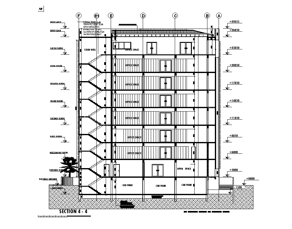 Section view of 24x17m office building is given in this Autocad drawing file. Download now.
