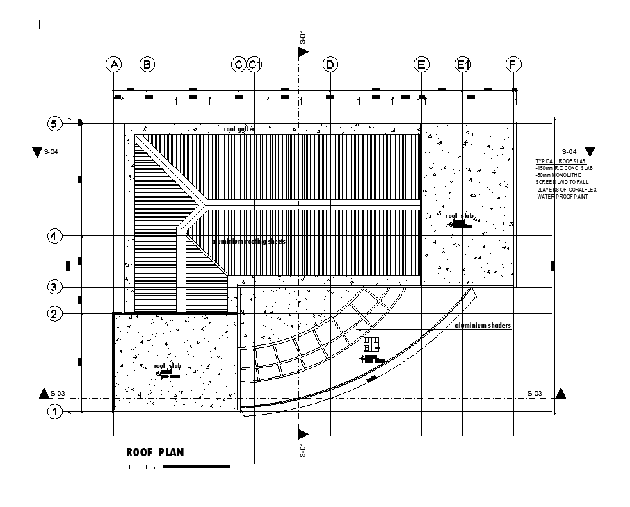 Roof plan of 24x17m office building is available in this Autocad drawing file.