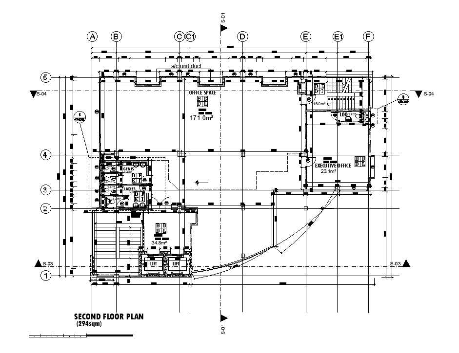 24x17m second floor office plan is given in this Autocad draiwing file. Total area of the floor is 294sqm. This is G+8 office building. In this floor rest room for male, office space, executive office, ladies toilet, lift and other details are given in this drawing model. For more details download the Autocad file. Thank you for downloading the Autocad file and other CAD program files from our website.