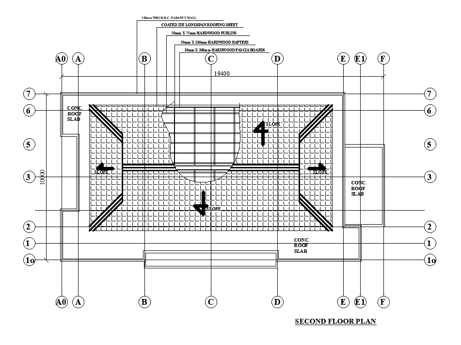 Roof plan 18x4m ground floor restaurant plan is given in this Autocad drawing file. Download now.