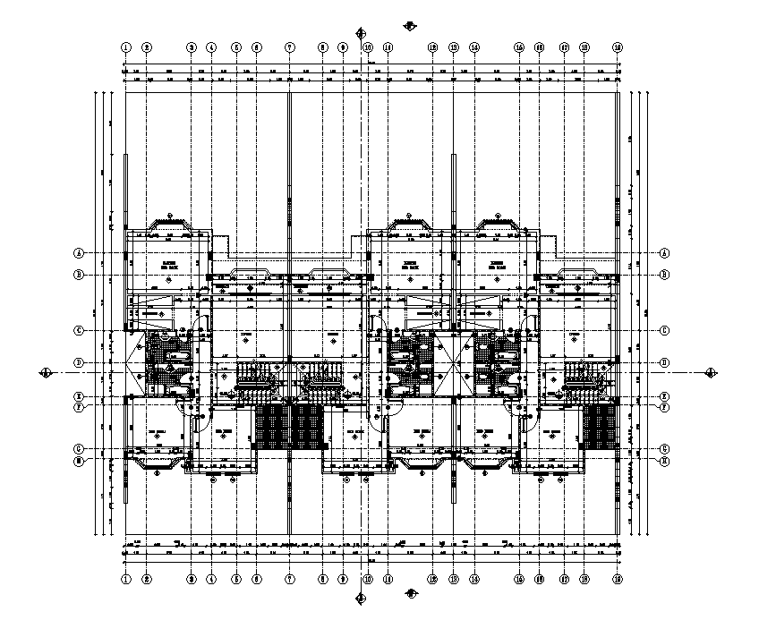 30x26m triple duplex house first floor plan is given in this Autocad drawing file. Download now.
