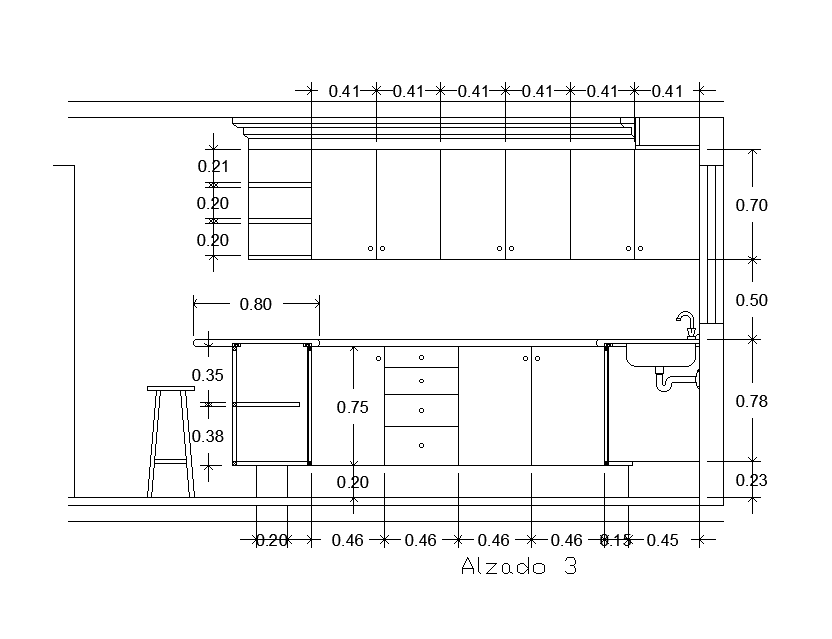 Section view of 3x2m kitchen plan is given in this Autocad drawing file. The length and breadth of the plan is 5m and 4m respectively. In this plan, oven are, gas stove place, sink, shelf and dining area and other details are mentioned. For more details download the Autocad file. Thank you for downloading the Autocad file and other CAD program files from our website.