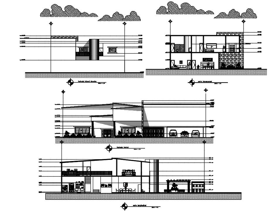 The residence modern swimming pool house building sectional elevation design which includes bedrooms with an attached toilet, living room, drawing room, kitchen, game zone, living room, study room dining area, and car parking porch. the total plot size is 17X34 meter breadth and length of house plot size. Thank you for downloading the Autocad file and other CAD program files from our website.