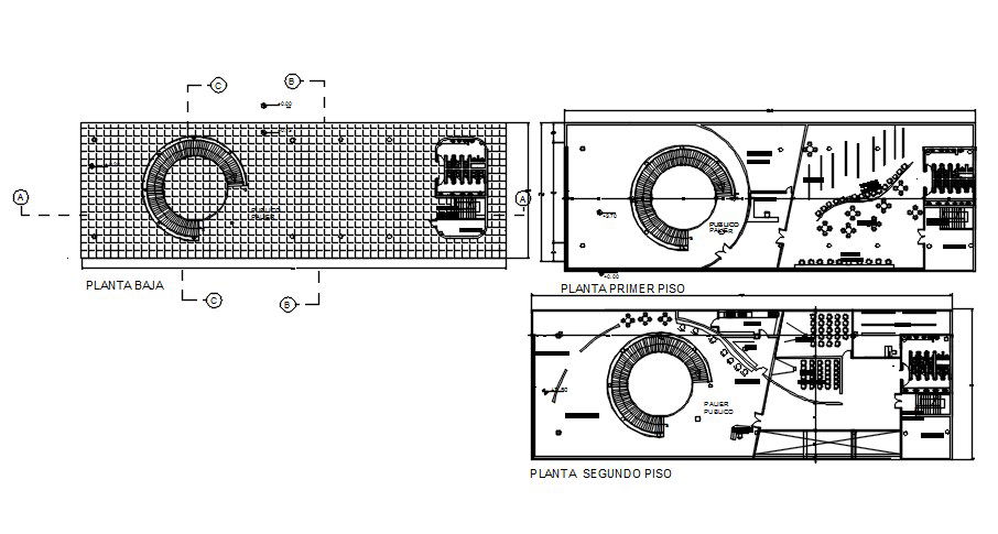 The commercial building ground floor, first floor and terrace floor plan CAD drawing that shows theater, restaurant, offices, toilet and spiral staircase detail dwg file. the total 52X16 meter breadth and length of commercial building plot size. Thank you for downloading the Autocad file and other CAD program files from our website.