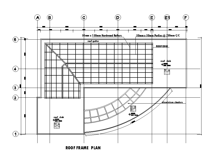 Roof frame plan of 24x17m office plan is given in this Autocad draiwing file. Download now.