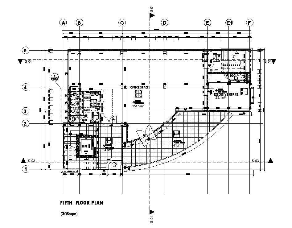 Electrical layout of 24x17m fifth floor office plan is given in this Autocad draiwing file. Total area of the floor is 308sqm. This is G+8 office building. In this floor rest room for male, office space, executive office, ladies toilet, lift and other details are given in this drawing model. For more details download the Autocad file. Thank you for downloading the Autocad file and other CAD program files from our website.