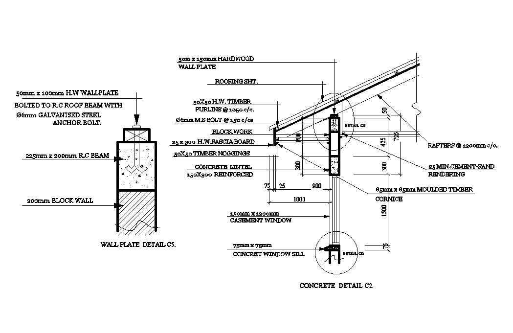 17x14m house plan of wall plate detail is given in this Autocad drawing file. Roof connection details are given in this model. Hardwood wall plate, timber noggins, cement sand rendering, block wall, RC beam, concrete lintel and other details are given in this model. For more details download the Autocad file. Thank you for downloading the Autocad file and other CAD program files from our website.