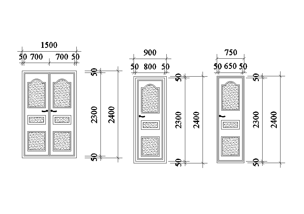 17x14m residential plan of door details are given in this drawing model. Three drawings are given in this drawing. The dimension of D1,D2, & D3 is 1500x2400mm, 900x24000mm and 750x2400mm respectively. For more details download the Autocad file. Thank you for downloading the Autocad file and other CAD program files from our website.