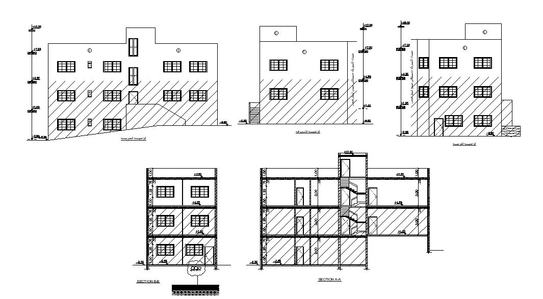200 Square Meter Apartment Building Sectional Elevation AutoCAD Drawing Download DWG File
