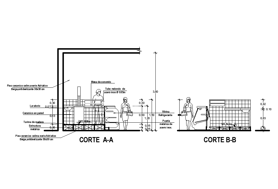Bathroom section details are separated in this AutoCAD drawing file. Download this 2d autocad drawing file.