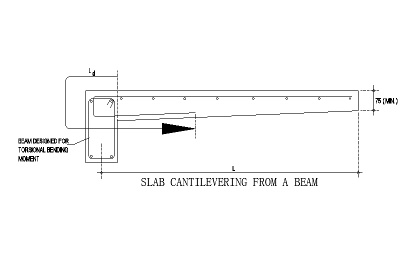 Slab cantilevering beam detail drawing presented in this AutoCAD file. Download this 2d autocad drawing .