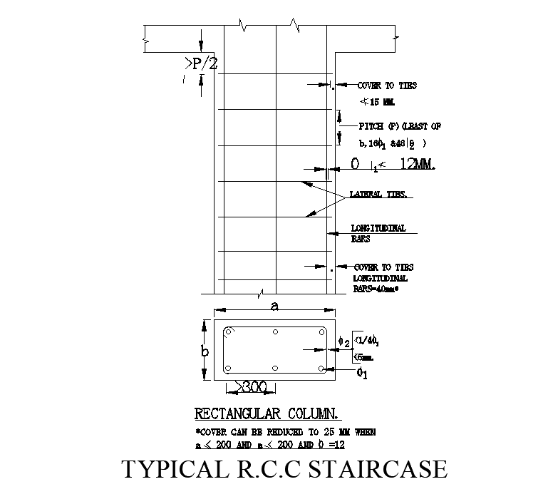 AutoCAD layout plan of RCC staircase and its RCC details is separated. Each footing designed as such providing support and stability according to standard referrals. The Main reinforcement and lateral reinforcement and material dimensions are specified in the diagram. Download the DWG file for a detailed analyses.