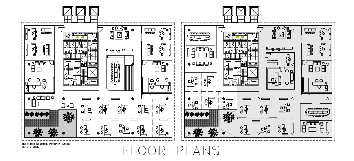 Bank headquarters plan is given in the Autocad drawing file. Download now.