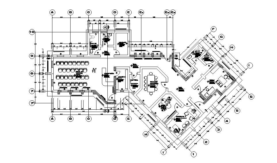 13x10m administrative office plan is given in this Autocad drawing model. Download now.