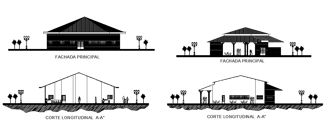 Section and elevation of Single story office plan is given in this Autocad drawing model.  Download now.