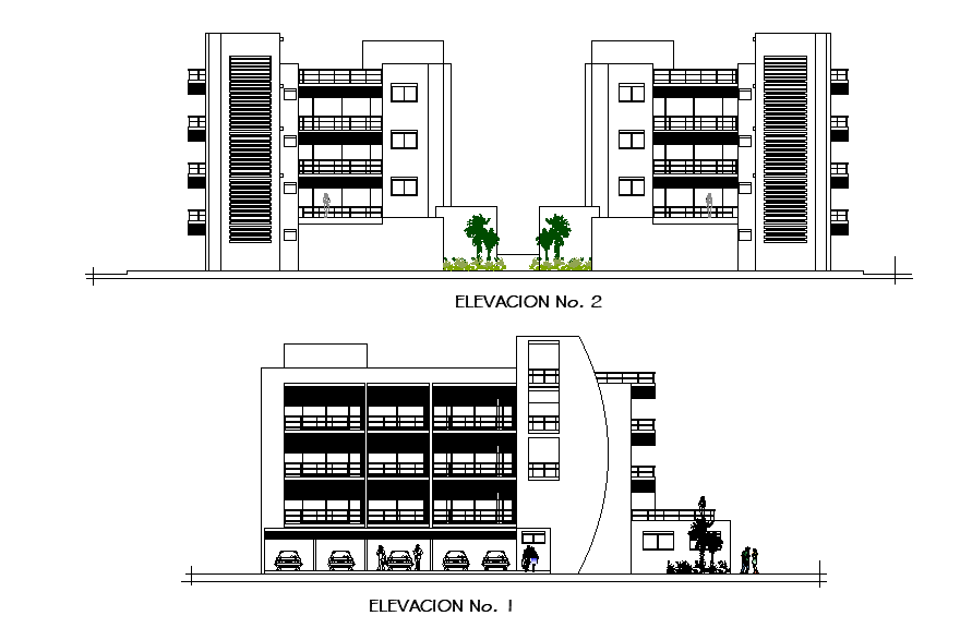 Apartment building elevation is presented in this Autocad drawing file. This is G+3 multifamily apartment building. In this plan, the living area, kitchen, dining area, car parking, master bedroom with attached toilet, kid’s room, common toilet, guest room with attached toilet, patio, and other details are given in this drawing model. For more details download the Autocad file. Thank you for downloading the Autocad file and other CAD program files from our website.