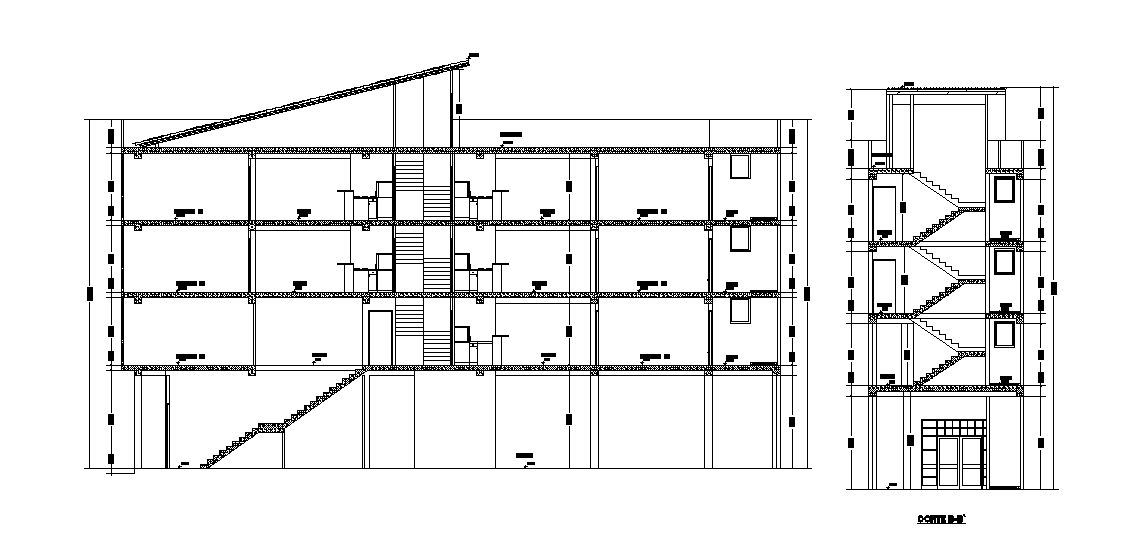 14m height of the office building section view is given in this Autocad drawing file. Download now.