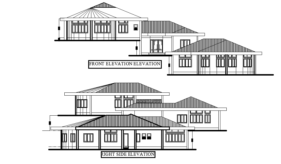 Front & right side elevation of the house building is given in this Autocad drawing model. This is luxury villa elevation building. For more details download the Autocad file. Thank you for downloading the Autocad file and other CAD program files from our website.