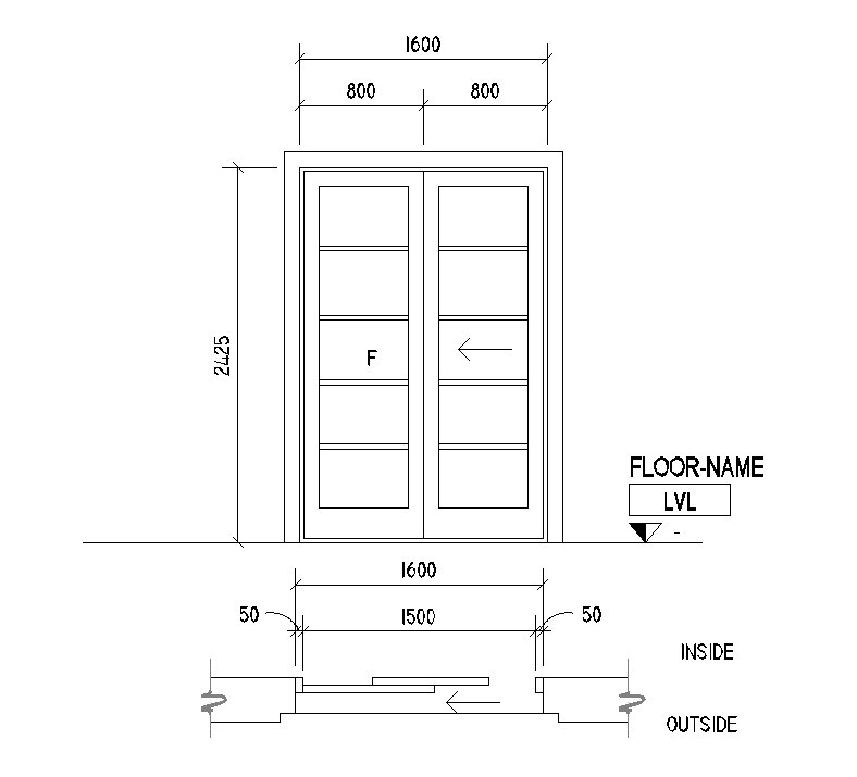 1600x2425mm door plan is given in Autocad drawing file. The dimensions of doors are mentioned in this drawing model. Door inside and outside details are given in this drawing model. For more details download the Autocad drawing file. Thank you for downloading the Autocad file and other CAD program files from our website.