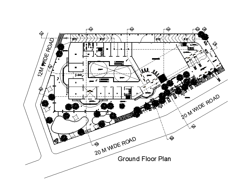 Ground floor plan of the shopping complex layout is given in this Autocad drawing file. This is G+4 shopping complex building. 12m and 20m wide road is there in front and right side of the building. Other details are given in this drawing plan. For more details download the autocad drawing file. Thank you for downloading the autocad file and other cad program files from our website.
