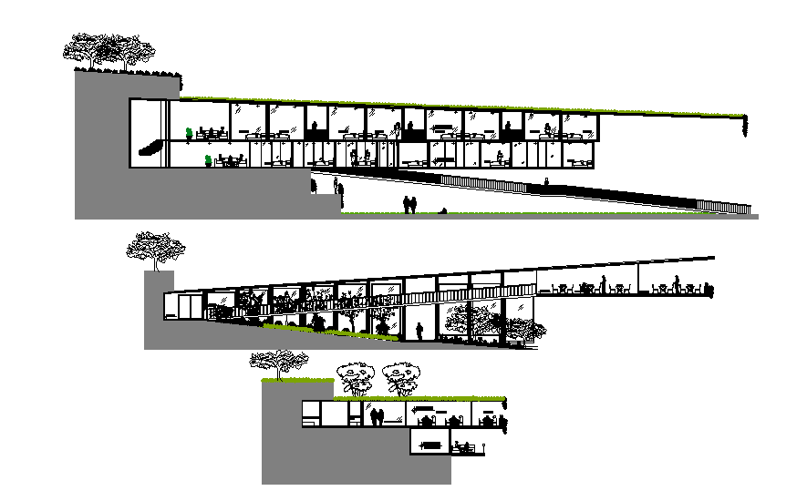 Eco lodge elevation building is given in this Autocad drawing file. Download now.