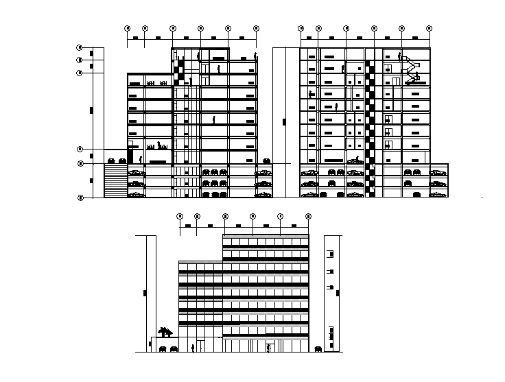 G+11 office building elevation is given in this Autocad drawing model. Download now.