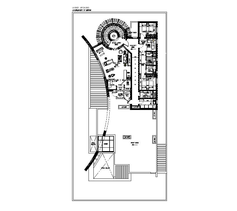 Luxury villa second floor plan is given in this Autocad drawing file. This is G+2 villa building. In the second floor, the living area, two maid rooms, common toilet, ironing area, kitchen, toilet & bathroom, gym area, sitting area, stair lobby and bar is available. For more details download the autocad drawing file. Thank you for downloading the autocad file and other cad program files from our website.