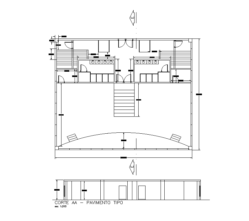 20x16m Auditorium first floor plan is given in this Autocad drawing file. Download now.