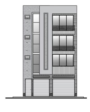 3 story house elevation 2d cad drawing details. Download free autocad drawing file.