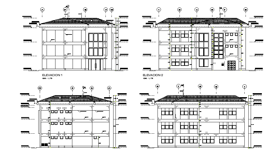 12m height of the apartment building is given in this Autocad drawing model. This is G+2 apartment building. The four side elevation of the building were given in this drawing model. For more details download the Autocad drawing file. Thank you for downloading the AutoCAD drawing file and other CAD program files from our website.
