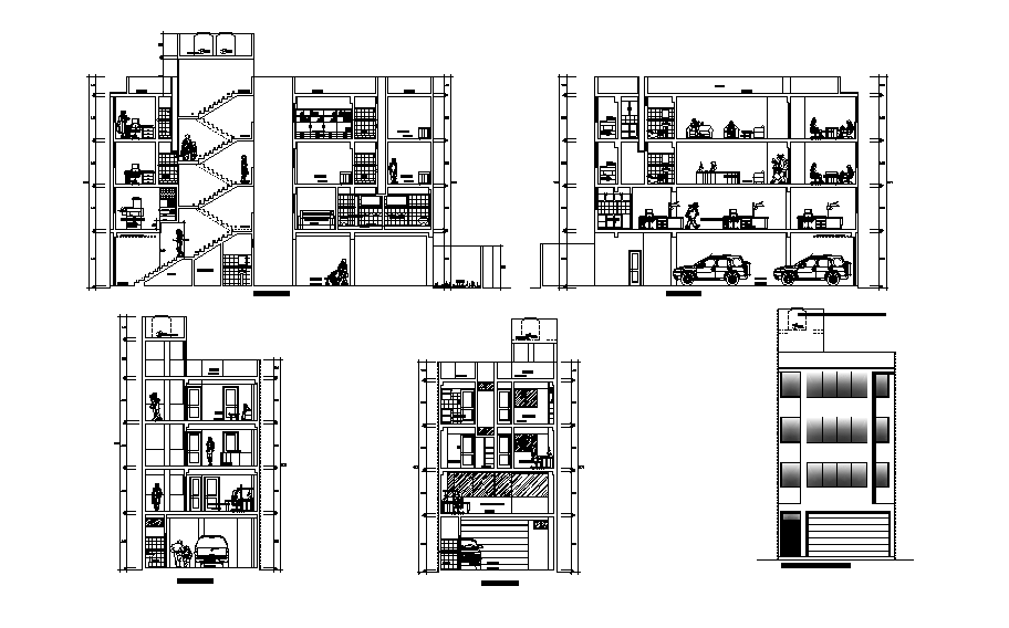 Section and elevation of 7x23m corporate office plan is given in this Autocad drawing model. This is G+3 office building. In this office plan, the car parking, circulation area, meeting hall, reception, waiting area, the director room, secretary room, control room, office cabins, conference room, junior assistant cabin and other details are given in this drawing model. For more details download the Autocad drawing file. Thank you for downloading the AutoCAD drawing file and other CAD program files from our website.